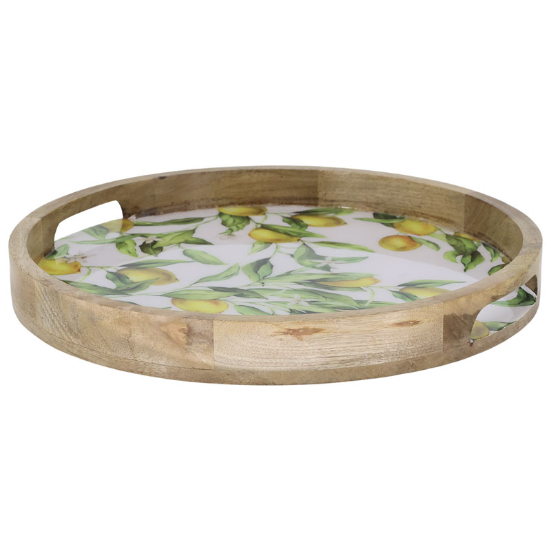 Läcker bricka från Chic Antique tillverkad i mangoträ. Med ett härligt och fräscht mönster av citroner på en vit botten.