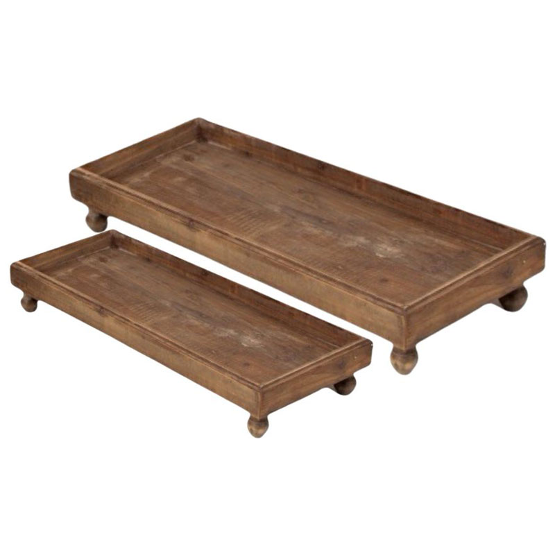 Stilig träbricka med en liten kant och fötter från Miljögården. Kan användas till förvaring eller en dekorativ detalj att ställa olika inredningsdetaljer på.