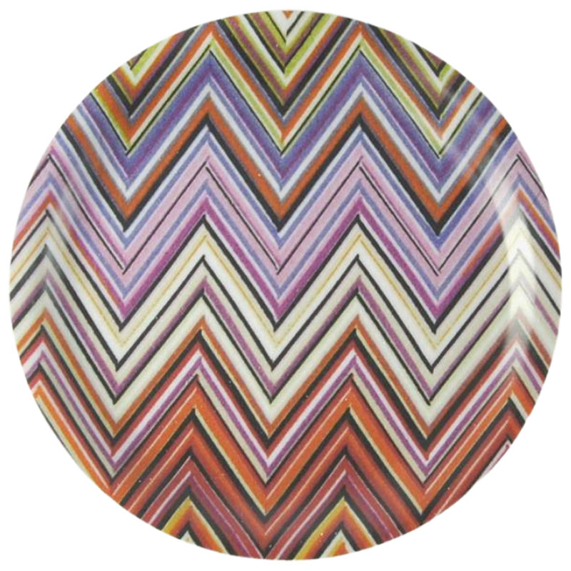 Prydd av ett zig zag mönster i rosa, orange och lila nyanser.