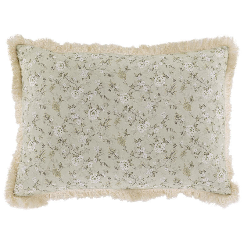 Vackert kuddfodral från Chic Antique, med ett småblommigt mönster i vitt och grönt mot en grön botten.