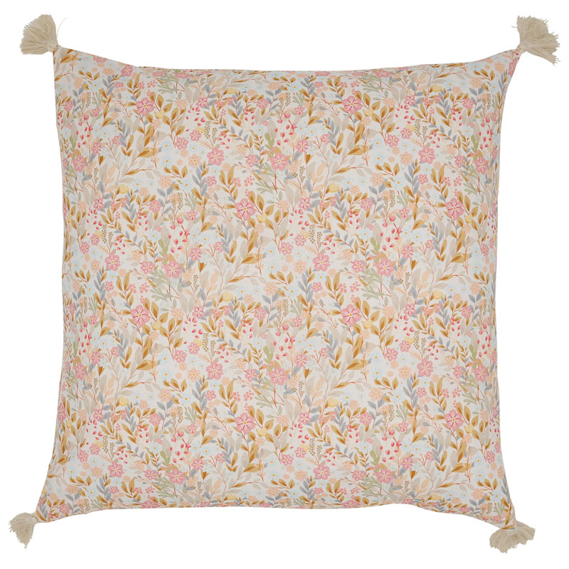 Aix Kuddfodral Blommig m Tofsar Rosa