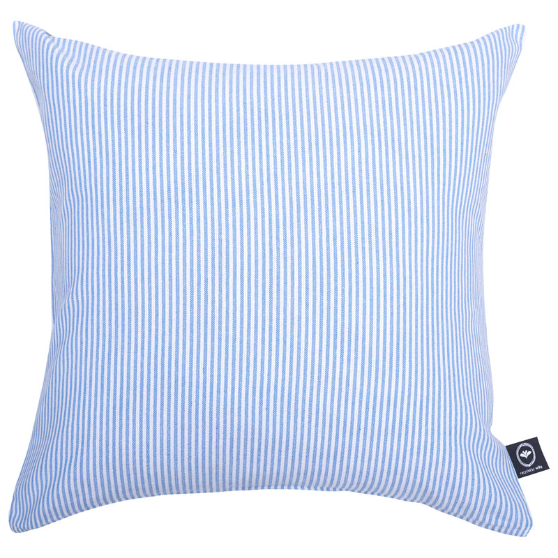 Snyggt återvunnet kuddfodral som är en del av serien Bosse från Recycled by Wille. Ett dekorativt fodral i ljusblått och vitt som ger rummet en lugn och ombonad känsla.