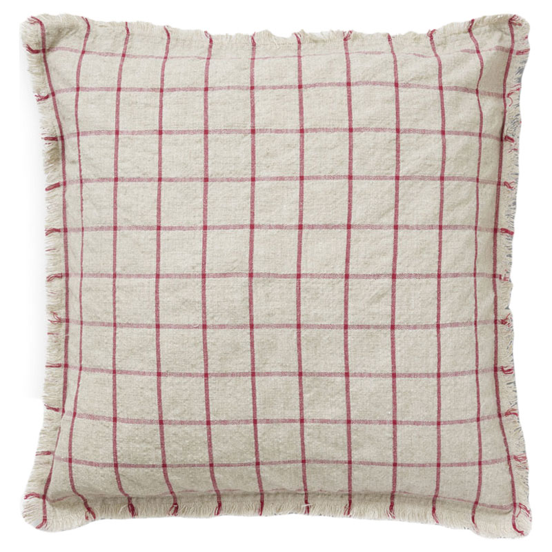 Rustikt och stilrent kuddfodral från Jakobsdals. Tillverkat i bomulls- och linmix med en tilltalande beige nyans och rött rutmönster som ger en fin kontrast. Runt kanterna löper en dekorativ kort frans.