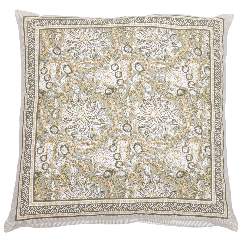 Kuddfodralet Dante har en härlig grön ton och ett subtilt växtmönster som ger rummet ett mjukt och välkomnande uttryck.