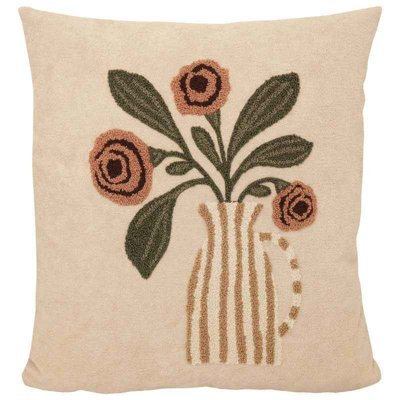 Mjukt och skönt kuddfodral i kortklippt "teddy"-kvalité från Redlunds med brodyr i form utav en vas med snittblommor i. Enfärgad baksida, dold dragkedja nertill.
