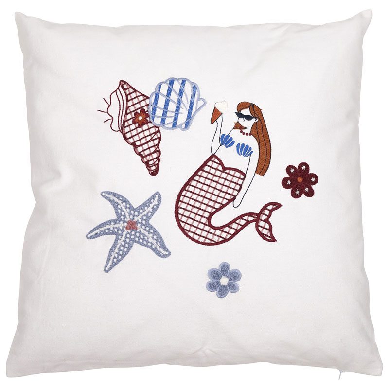 Majsan är ett unikt broderat kuddfodral i 100% bomull som utstrålar sommarkänsla och färgstark energi.