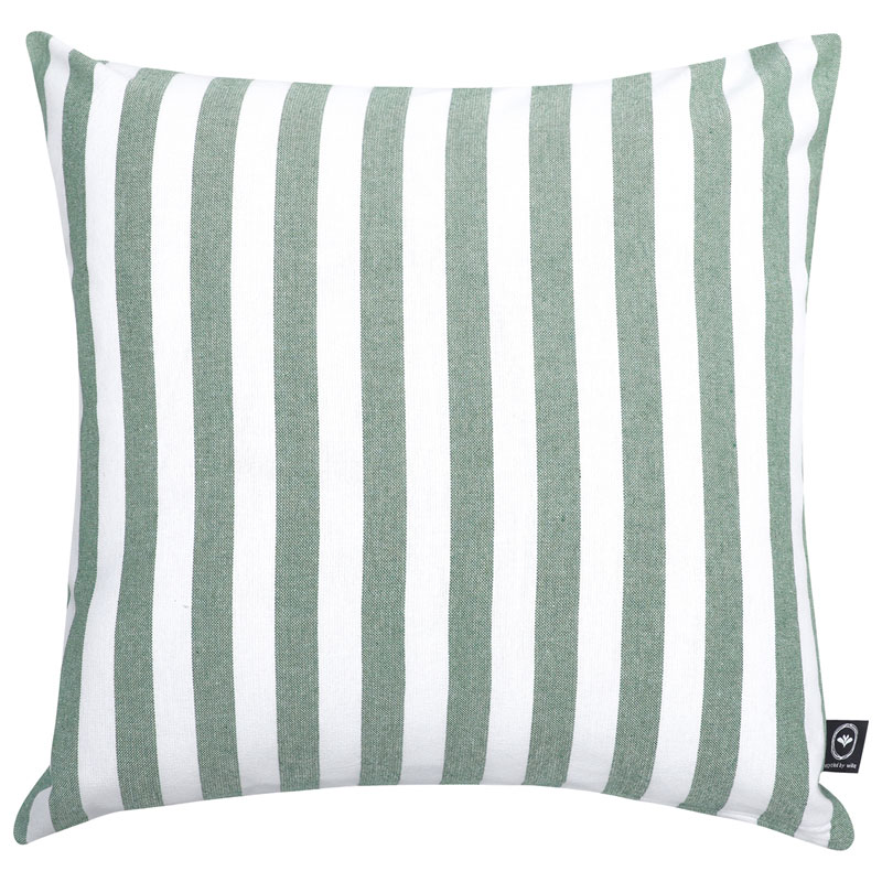 Pelle är ett snyggt kuddfodral från Recycled By Wille, med ett randigt mönster i grönt och vitt.