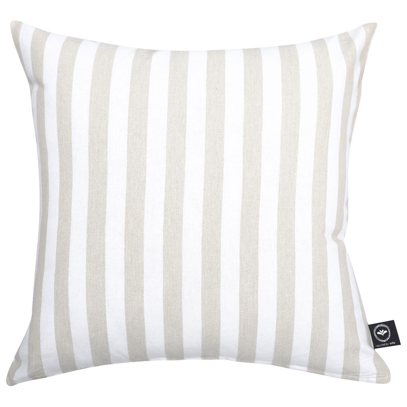 Pelle är ett snyggt kuddfodral från Recycled By Wille, med ett randigt mönster i linne och vitt.