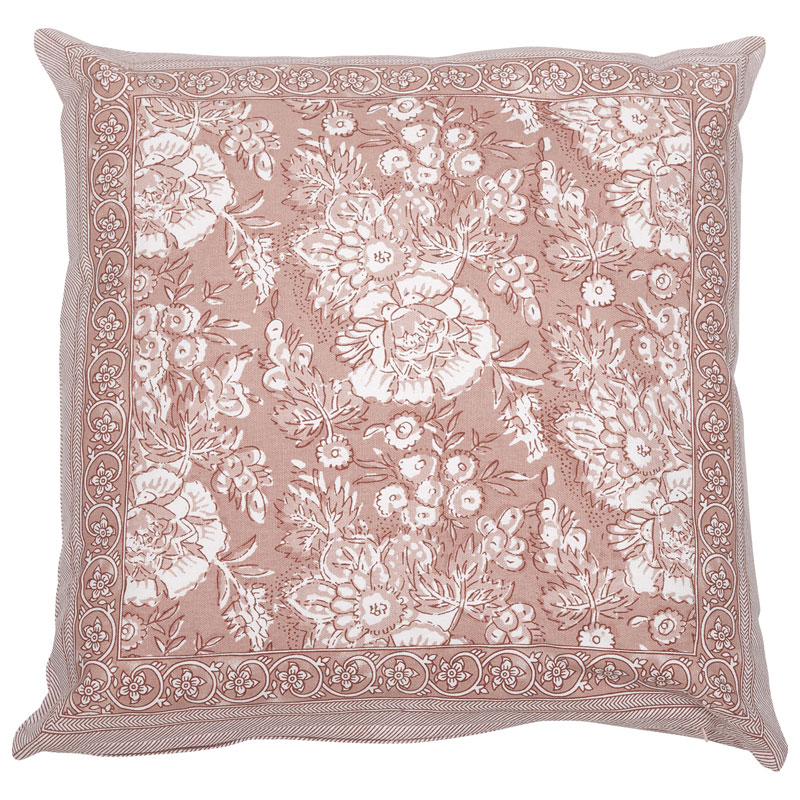 Vackert kuddfodral i 100% bomull från Fondaco. Med ett tjusigt blommönster i en härligt rosa nyans.