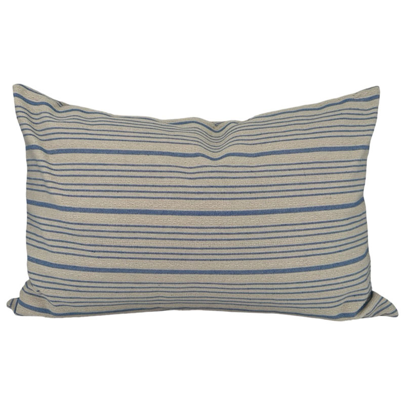 Stria är ett tjusigt blårandigt kuddfodral med en linne/naturfärgad botten.