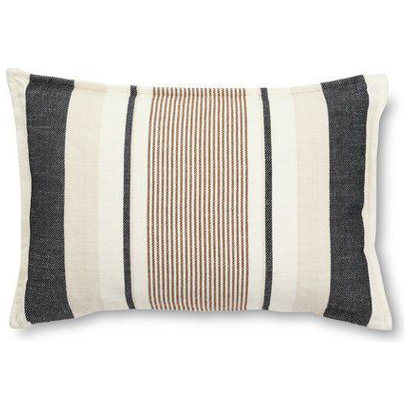 Den genomarbetade väven gör att kudden får ett hantverksmässigt uttryck, och kombinationen av färger och mönster skapar en varm och tidlös känsla!