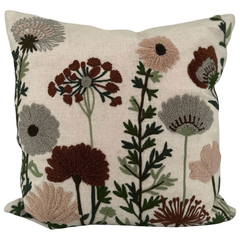 Tanacetum är ett vackert broderat kuddfodral med blommotiv från Miljögården.