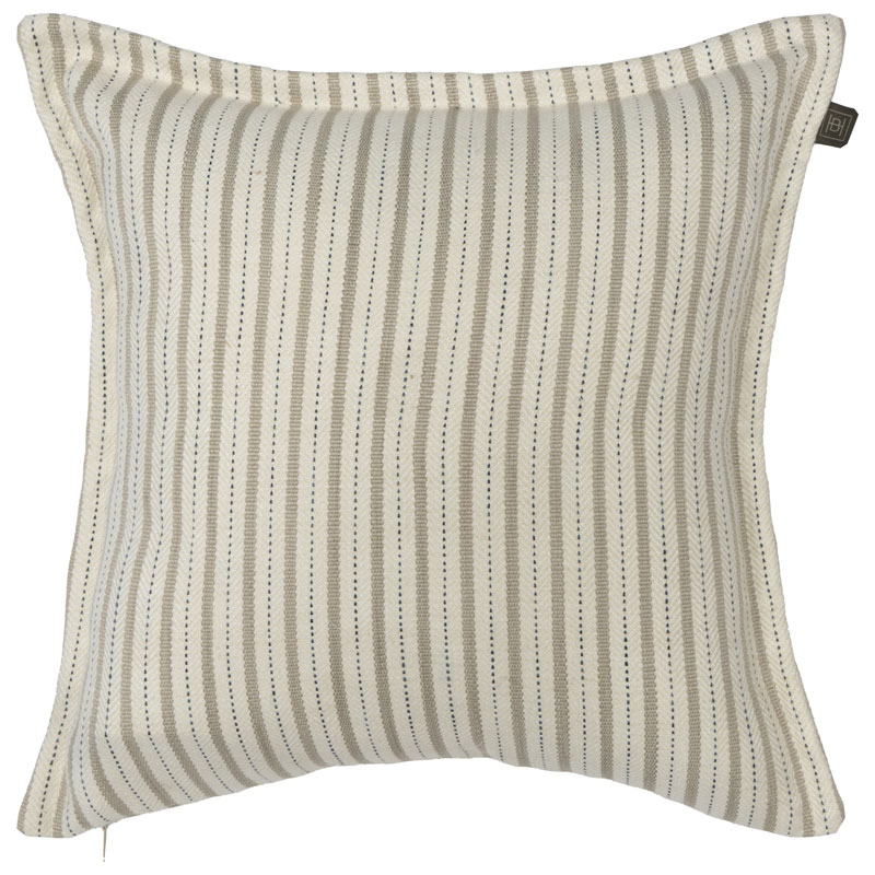 Snyggt kuddfodral i offwhite med ränder i beige och svart från Halvor Bakke. Tygets lätta struktur gör kudden mjuk och behaglig. Den fungerar lika bra ensam som i kombination med andra kuddar för att skapa en harmonisk och stilfull atmosfär.