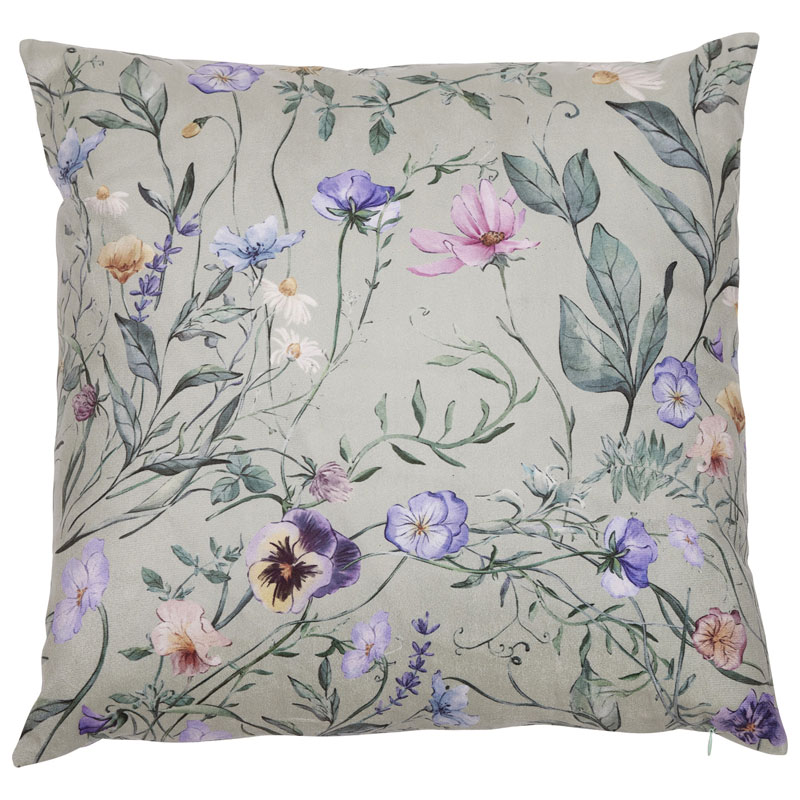 Vackert blommigt kuddfodral i grönt, tillverkat i mjuk, fin sammet som ger en romantiskt och klassisk känsla.
