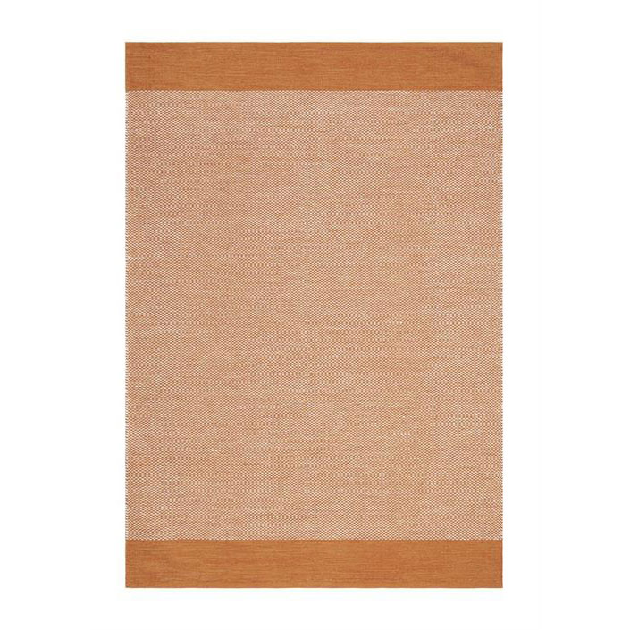 Härlig bomullsmatta i vävt garn från KM Carpets, i två olika toner av orange tillsammans med ett vitt garn.
