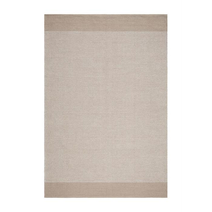 Härlig bomullsmatta i vävt garn från KM Carpets, i två olika toner av beige tillsammans med ett vitt garn.