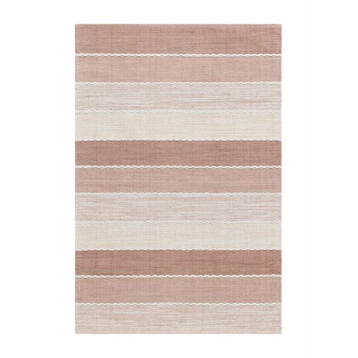 Båstad Gammelrosa är vackert randig i nyanser av mjuk rosa, pudrig beige och creme, vilket tillsammans skapar ett varmt och ombonat uttryck.