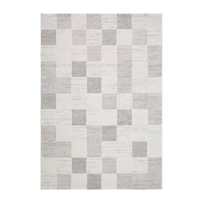 Bella Square från KM Carpets, elegant och mjuk wiltonmatta med trendigt rutmönster i snygga nyanser av vitt, creme och grått. Väven har olika lugglängd som gör mönstret mer levande.
