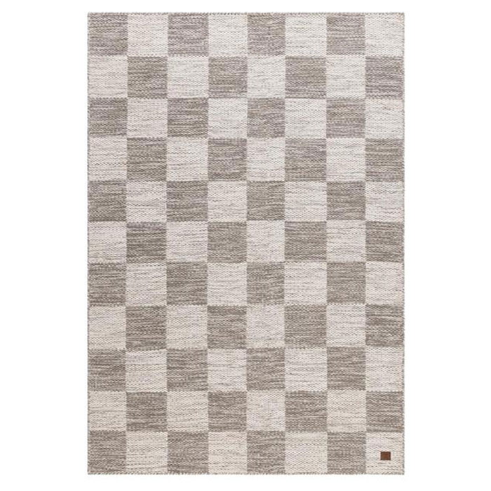 Det gråmelerade och det naturvita garnet som tillsammans bilder ett häftigt rutigt mönster som gör denna gråa mattan till en fröjd för ögat. En vacker och tidlös matta som kommer att kunna njutas av länge tack vare ullens alla fördelar.