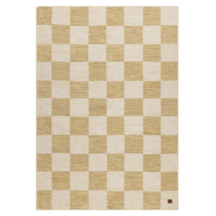 Det gulmelerade och det naturvita garnet som tillsammans bilder ett häftigt rutigt mönster som gör mattan till en fröjd för ögat. En vacker och tidlös matta som kommer att kunna njutas av länge tack vare ullens alla fördelar.