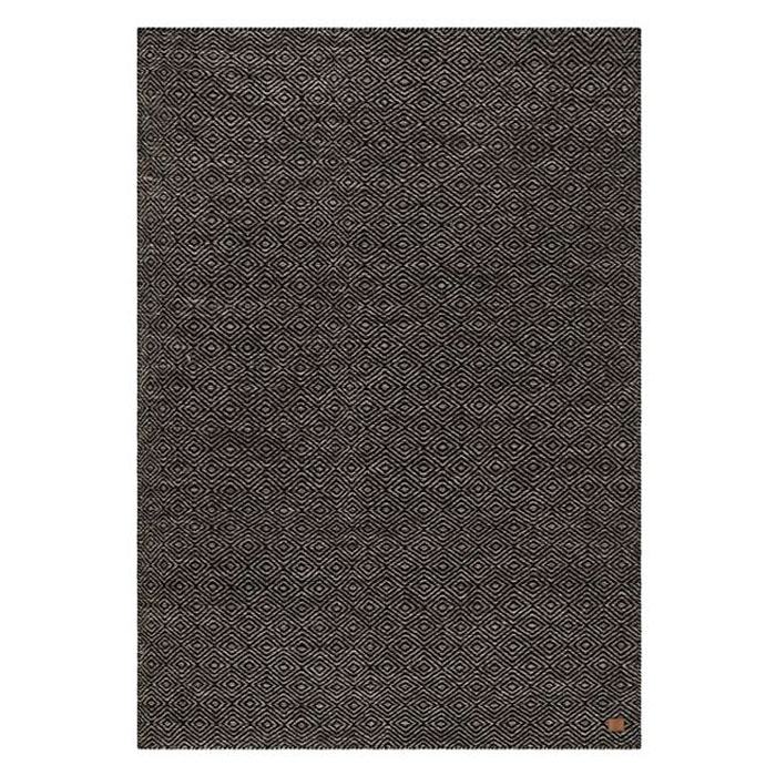 Gåsöga från KM Carpets, handvävd matta i ull- och bomullsmix med ett gåsögemönster som går i två färger - ett svart garn blandas med ett brunmelerat garn som tillsammans utgör det rutiga mönstret.