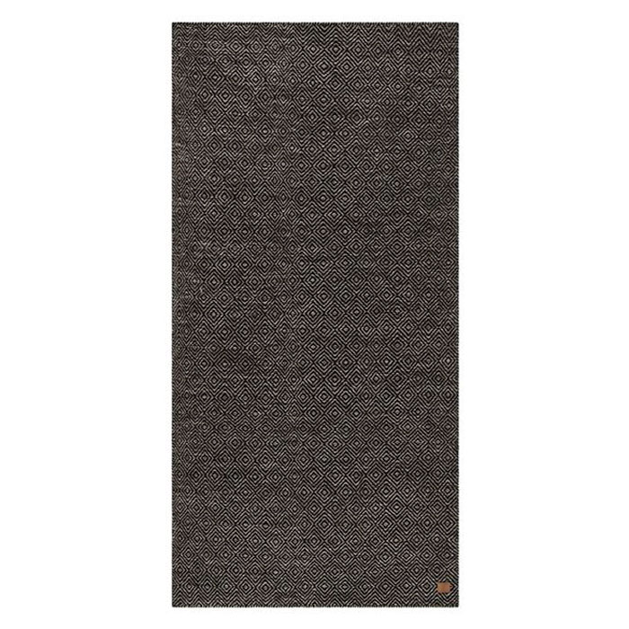 Gåsöga från KM Carpets, handvävd matta i ull- och bomullsmix med ett gåsögemönster som går i två färger - ett svart garn blandas med ett brunmelerat garn som tillsammans utgör det rutiga mönstret.