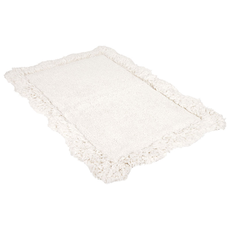 Jazz från Fondaco, enfärgad matta med vågig, tuftad kant som skapar en mjuk ram. Den tuftade texturen är härlig att stå på och blir ett varmt inslag i rummet.
