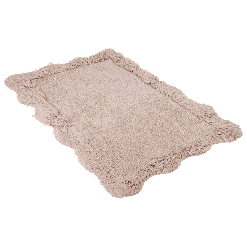 Jazz från Fondaco, enfärgad matta med vågig, tuftad kant som skapar en mjuk ram. Den tuftade texturen är härlig att stå på och blir ett varmt inslag i rummet.