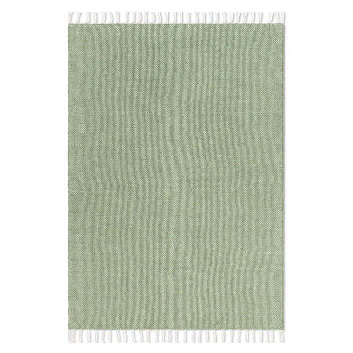 Färgen Grön har en mjuk och fräsch timjangrön ton. En lätt dämpad nyans som ger ett lugnt och modernt uttryck, en matta som fungerar lika bra under soffbordet som i hallen, sovrummet eller i sommarstugan.