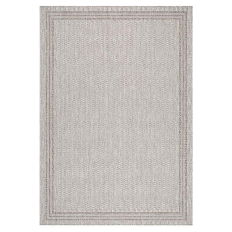 Madrid Frame från KM Carpets, snygg flatvävd matta i ljusbeige med kantbård i gråbeige färgtoner. Mattan har langett runtom och baksida i latex som gör att den ligger bra på golvet.