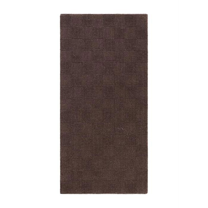 Med sitt vackra, rutiga mönster i chokladbrunt, där släta och upphöjda partier varvas, skapar mattan en spännande struktur och ett harmoniskt uttryck.