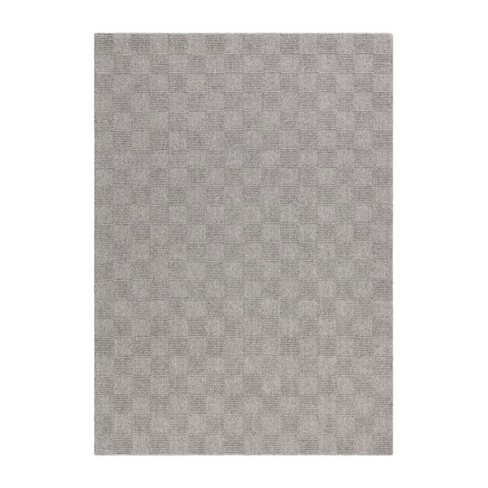 Med sitt vackra, rutiga mönster i gråbeige, där släta och upphöjda partier varvas, skapar mattan en spännande struktur och ett harmoniskt uttryck.