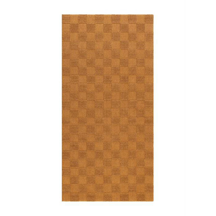 Med sitt vackra, rutiga mönster i rostorange, där släta och upphöjda partier varvas, skapar mattan en spännande struktur och ett harmoniskt uttryck.