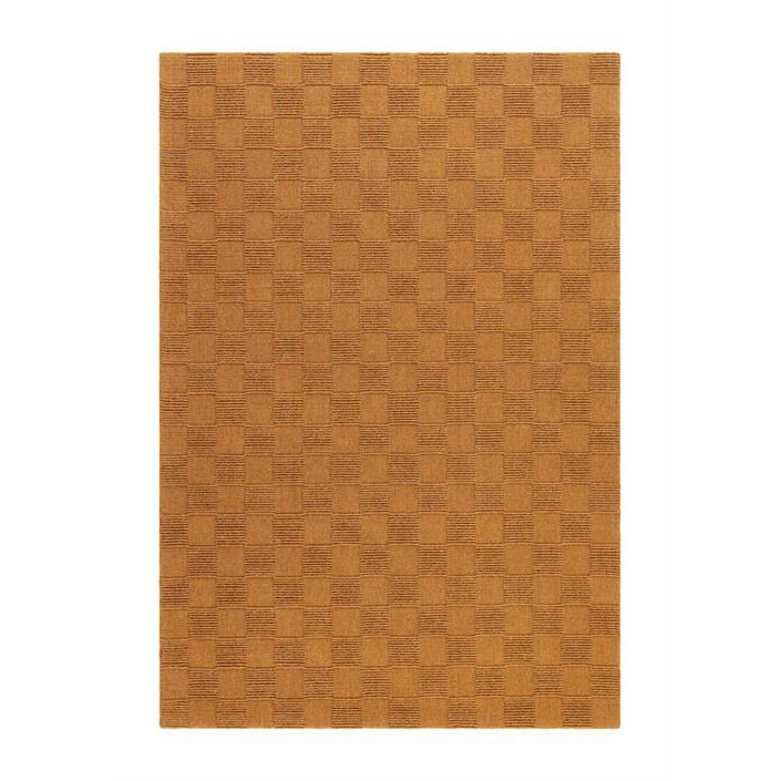 Med sitt vackra, rutiga mönster i rostorange, där släta och upphöjda partier varvas, skapar mattan en spännande struktur och ett harmoniskt uttryck.