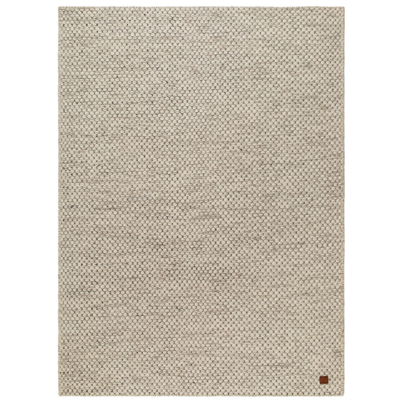Torekov från KM Carpets, snygg och mjuk matta med modern touch i ull- och bomullsmix. Den vackra melerade väven går i naturnära toner av linbeige och creme med svarta inslag.
