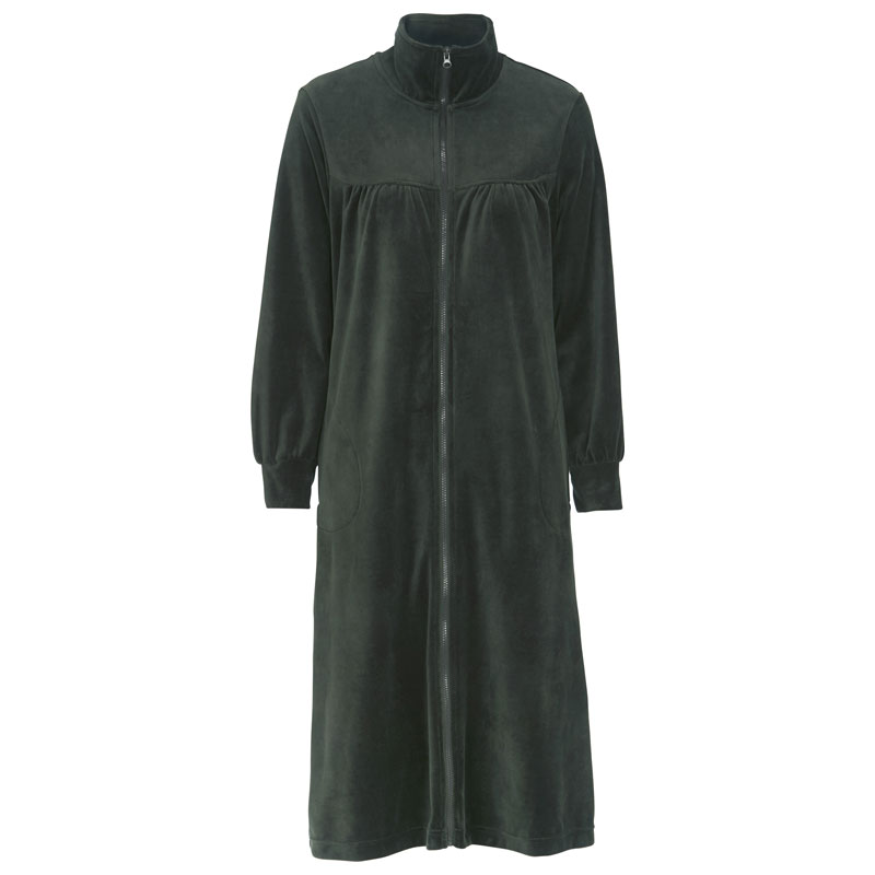 Gosig morgonrock i velour från Damella of Sweden. Designad med en hög krage, fickor i sidan och en smidig dragkedja som både ger stil och användarvänlighet.
