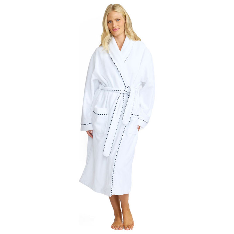 Den har en mjuk utsida och en absorberande insida. Perfekt att ta på sig när man kliver upp ur sängen, över badkläderna eller att bara mysa runt i hemma.