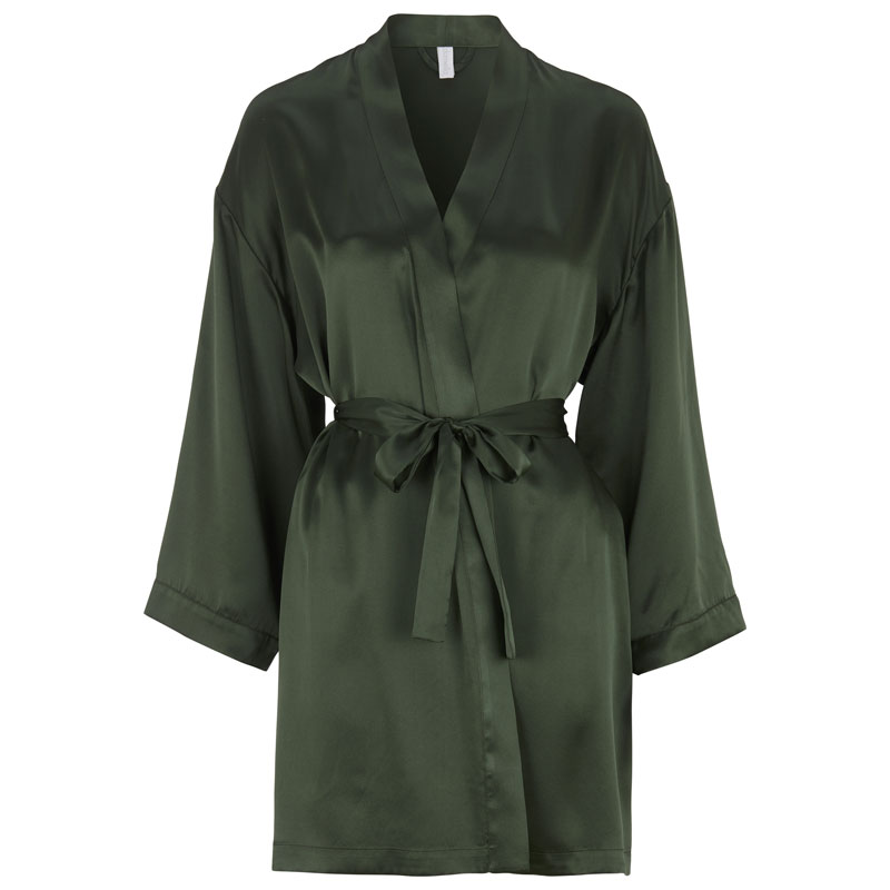 Snygg morgonrock i siden från Damella of Sweden. Modellen är omlott och i lyxigt vävt siden. Både elegant och bekväm med långa ärmar för extra värme.