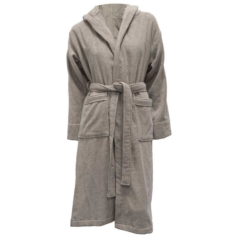 Den är mjuk, tjock och absorberande, perfekt efter dusch eller bad. Med huva och djupa, utanpåliggande fickor kombineras funktion med stil.