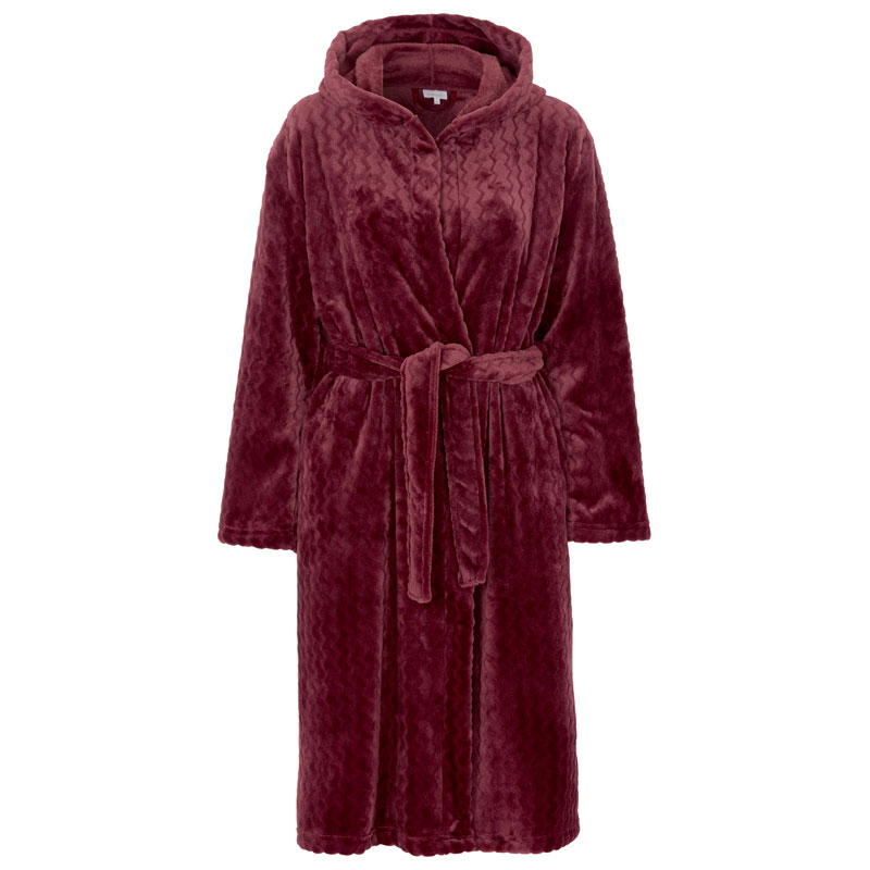 Härlig morgonrock i velour-fleece från Damella of Sweden. Designad för att ge både komfort och stil. Med en huva och diskreta sidfickor längs sömmarna. En varm och mysig morgonrock för kallare dagar.