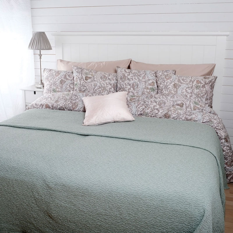 Det diskreta vågmönstret skapar ett sobert intryck och tillför struktur i bäddningen.