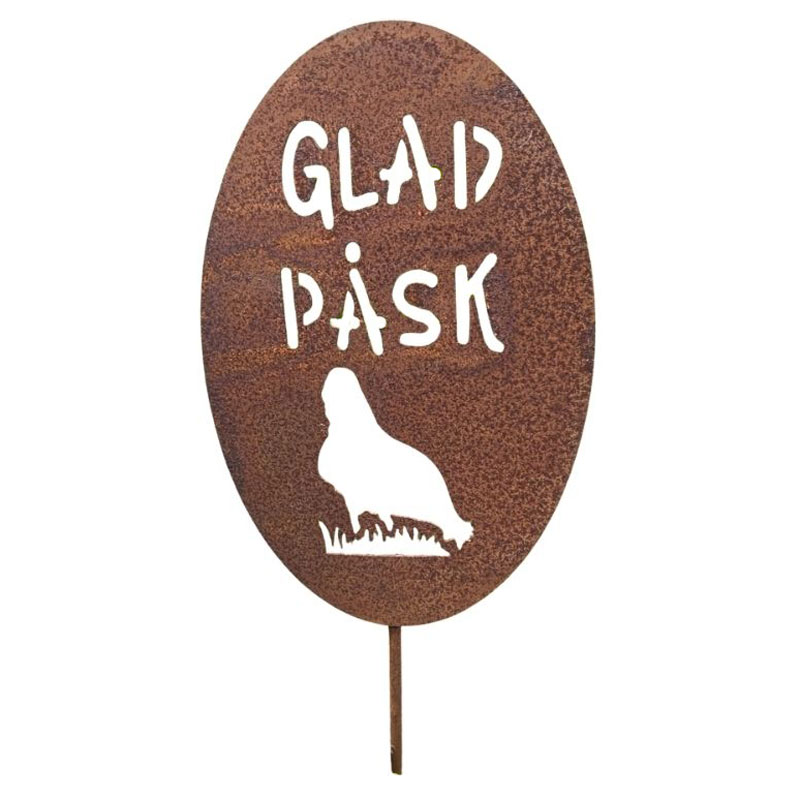 Trevlig dekoration till krukor från Lind Decoration, bestående av ett ägg med orden Glad Påsk utstansade, samt utstansat motiv av en höna.
