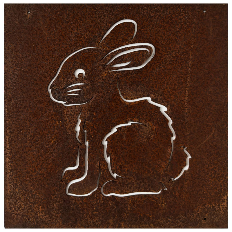 Fin skylt till armeringsnät från Lind Decoration, med utstansat motiv av en kanin.