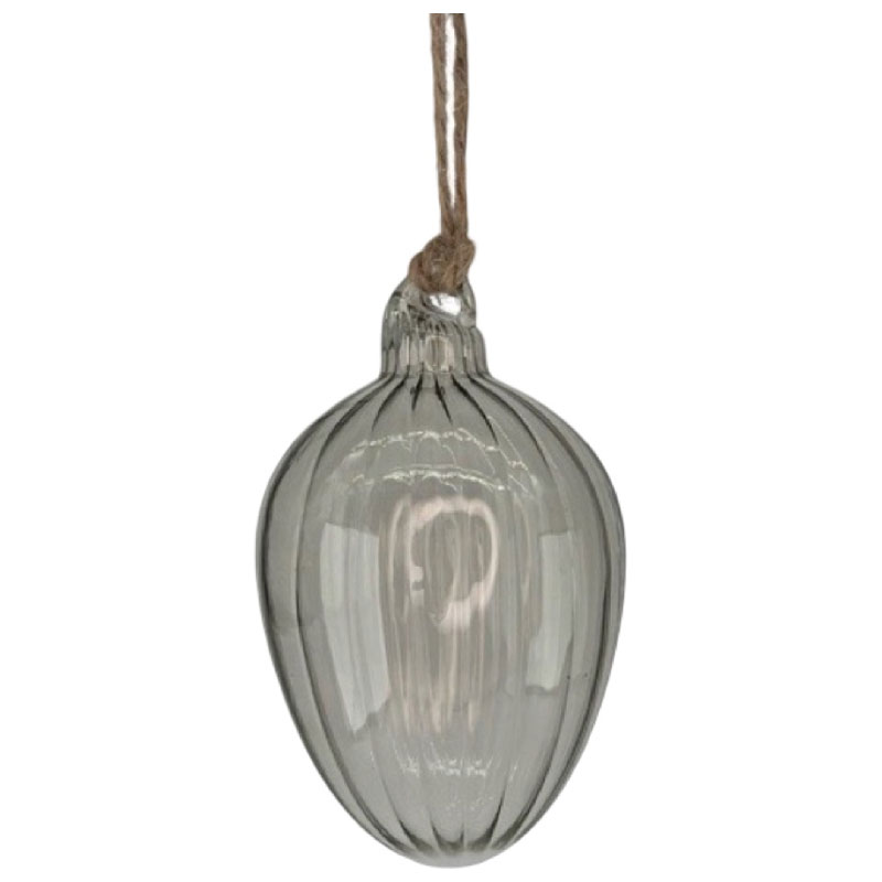 Läckert påskägg i glas med en fin räfflad design från Miljögården. Glasägget är munblåst och därav blir varje ägg unikt i sitt utseende.