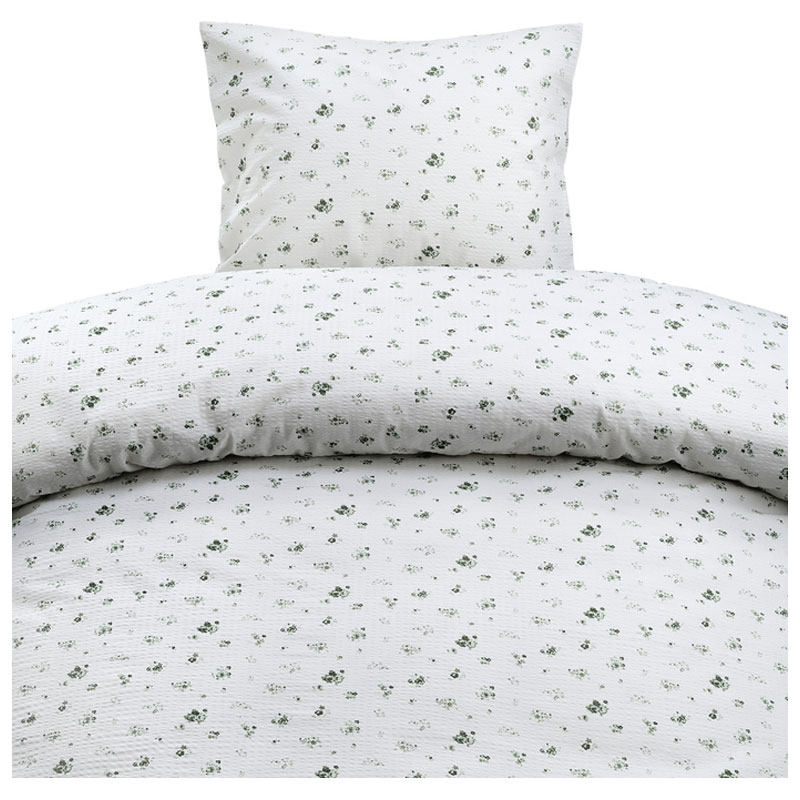 Vackert påslakan i bäckebölja med blommigt mönster. Crépe-effekten gör att bäddsetet känns svalt och skönt på sommaren, veckningen på tyget ger extra luftcirkulation och andningsförmåga.