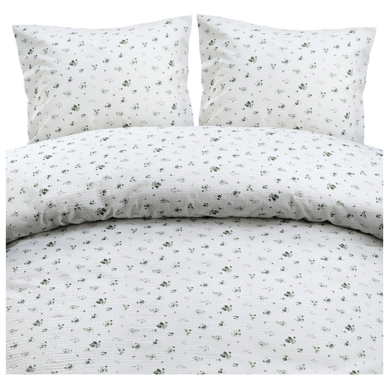 Vackert påslakan i bäckebölja med blommigt mönster. Crépe-effekten gör att bäddsetet känns svalt och skönt på sommaren, veckningen på tyget ger extra luftcirkulation och andningsförmåga.