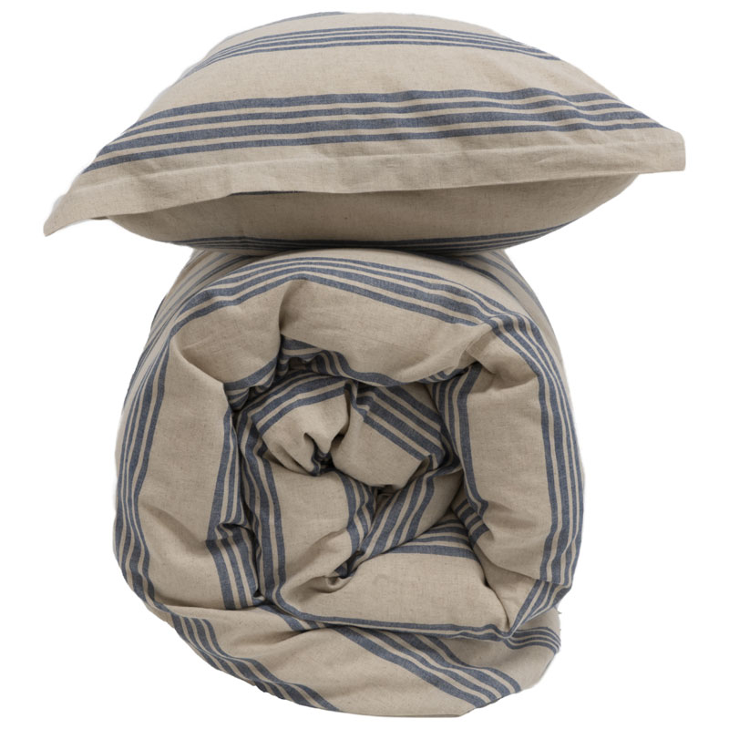 Apell påslakanset från Gustav Ovland. Ger ett rustikt och industriellt uttryck i form av ränder.