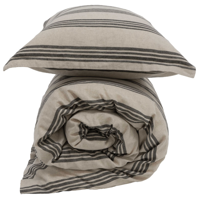 Apell påslakanset från Gustav Ovland. Ger ett rustikt och industriellt uttryck i form av ränder.