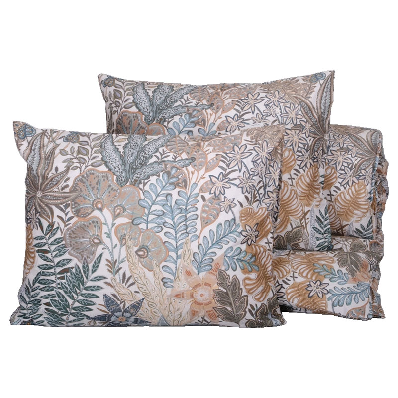 Bellö är ett vackert påslakanset i bomullssatin med elegant lyster. Det har ett fint bladmönster i gröna och beige toner.