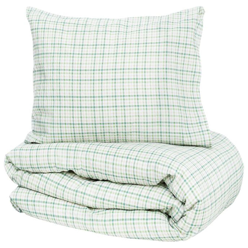 Vackert bäddset från Kosta Linneväveri som har ett klassiskt rutmönster i mjuka gröna och vita toner som skapar en lugn och tidlös känsla i sovrummet.